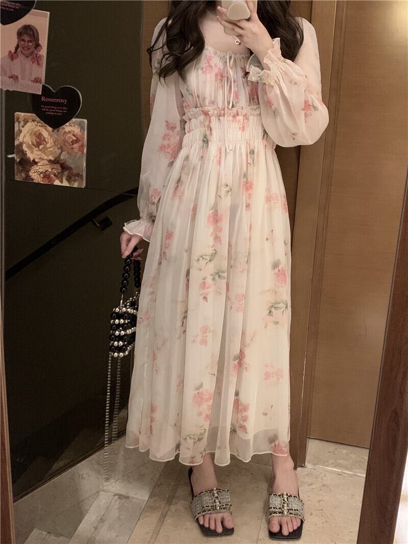 Floral dress women's summer 2022 new first love gentle wind temperament goddess fan unique and beautiful long skirt ロング サマー 夏物 花柄 スカート s576113209220272