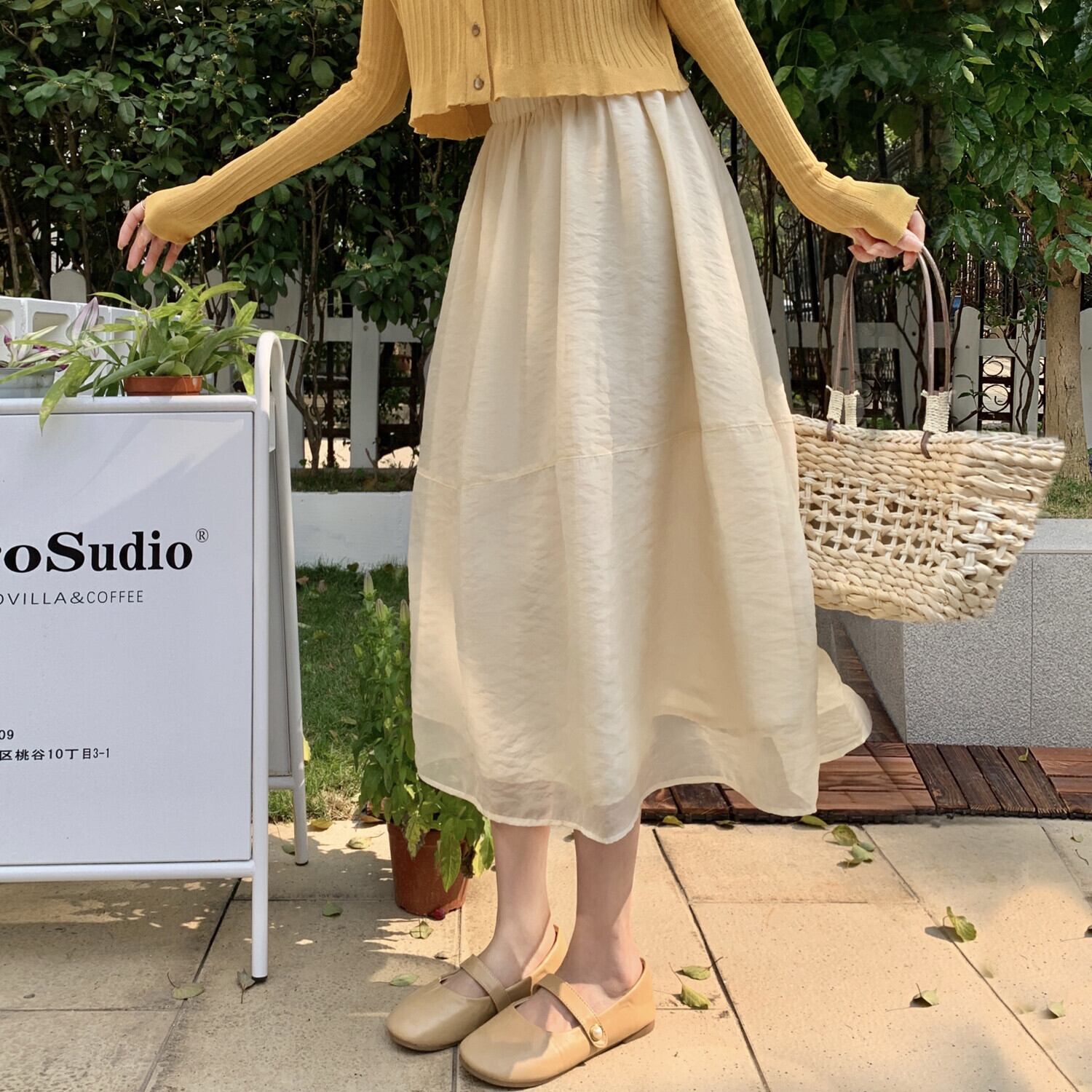 Mesh skirt women's spring 2022 new high-waisted a-line skirt small high-end unique gentle long skirt ロング スプリング 春物 メッシュ スカート Aライン s576187819359182