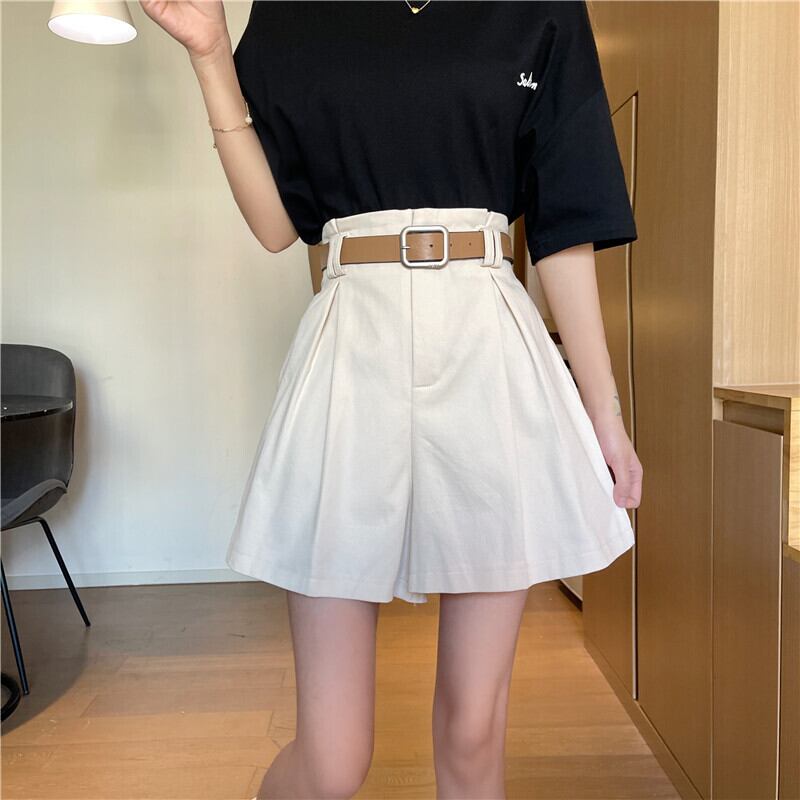 Cool salt khaki casual shorts women's summer 2022 new small tall waist loose all-match wide-leg pants カジュアル サマー 夏物 ショーツ ブルマー s576190327217216