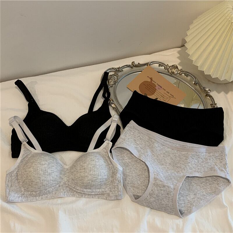 2022 summer new ese wrap chest without steel ring gather underwear two-piece gray bra set women's clothing サマー 夏物 リング 指輪 s576194262960285