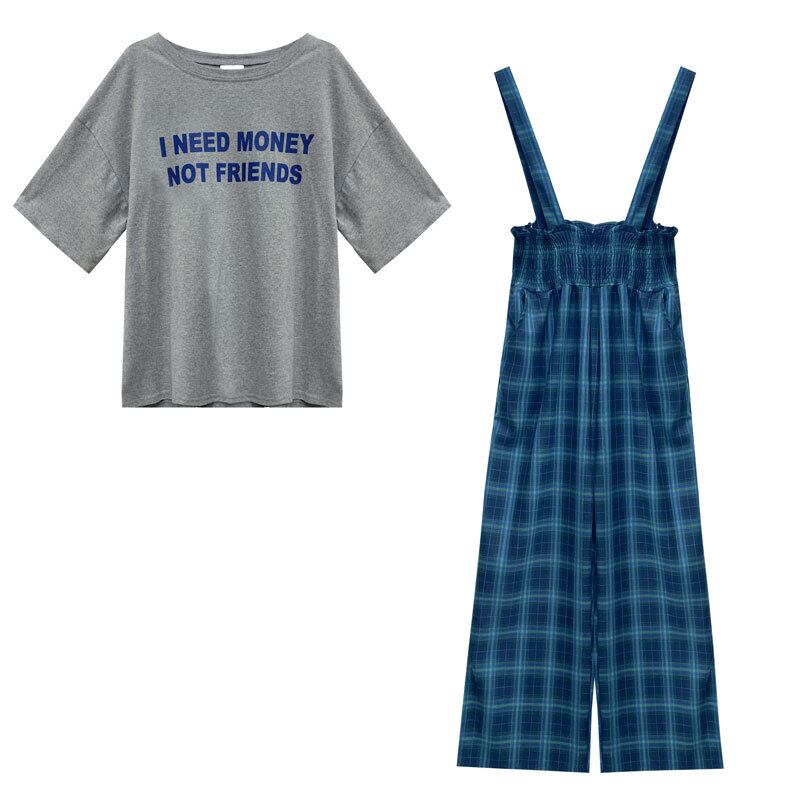 Plaid overalls women's design sense niche 2022 new summer fashion version small split wide-leg pants サマー 夏物 s576136376810056