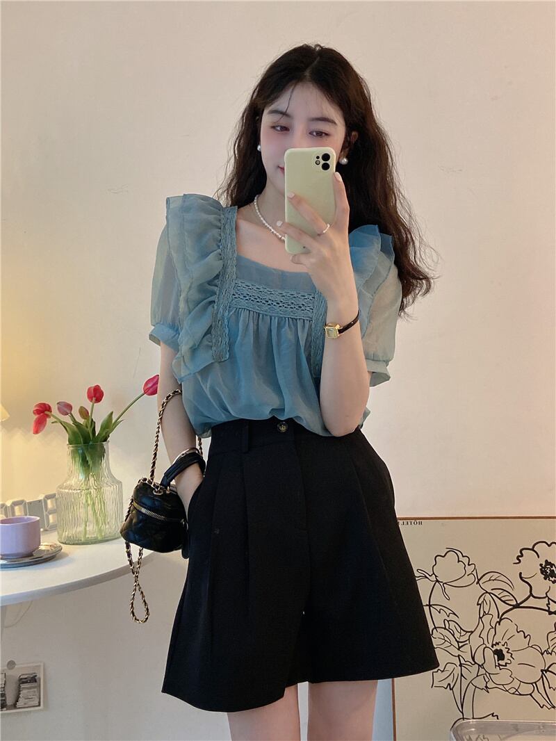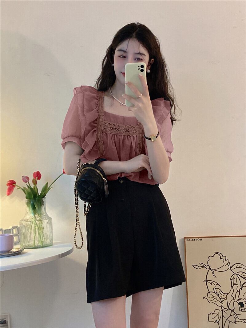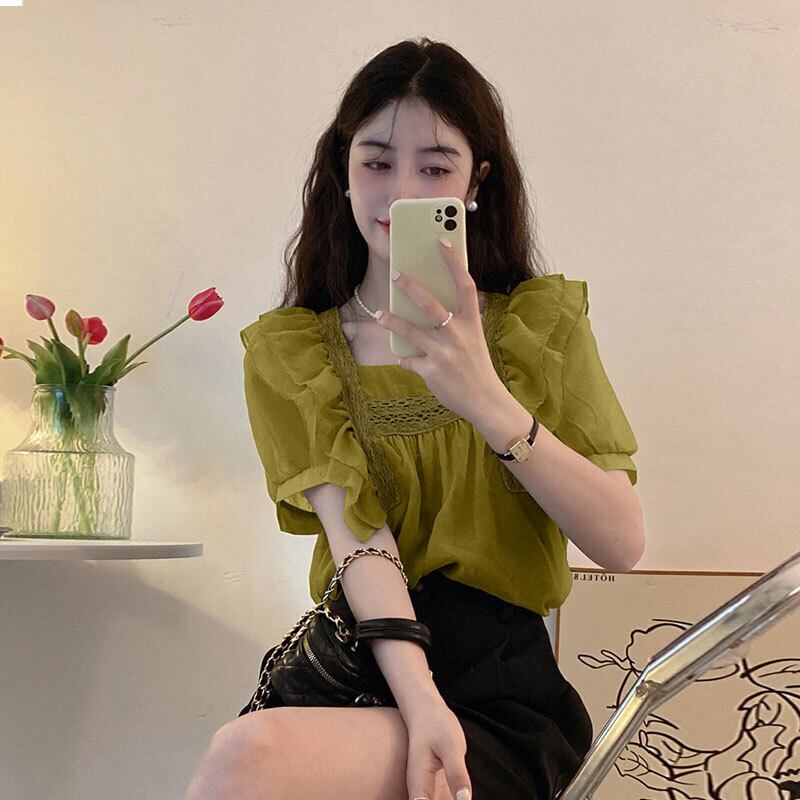 French retro square-neck top women's summer design niche 2022 new temperament gentle wind puff sleeve shirt レトロ サマー 夏物 スクウェア s576156524024722