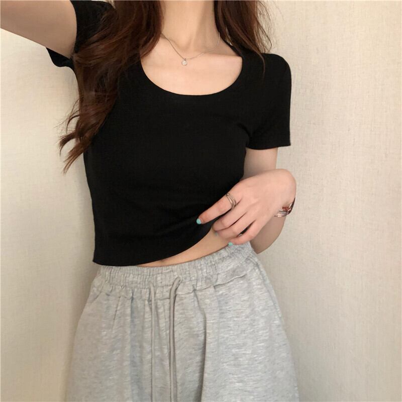 Solid color short-sleeved T-shirt women's summer 2022 new design sense niche basic models slim fit and thin short top clothes ショート サマー 夏物 スリム Tシャツ ソリッドカラー s576153698165094