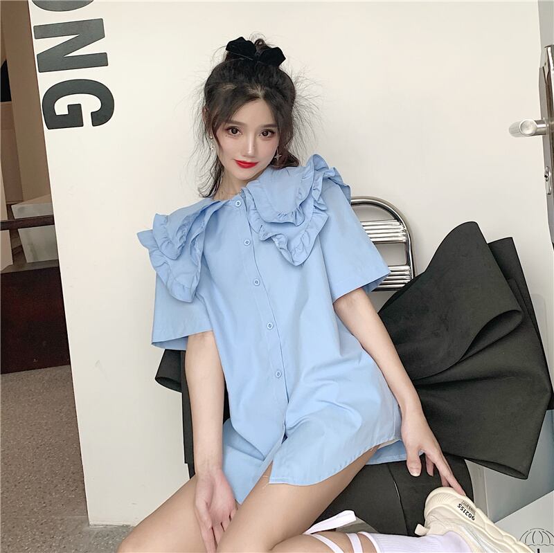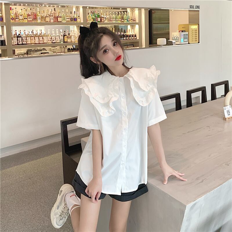 White short-sleeved doll-collar shirt women's summer 2022 new design shirt style Western-style age-reducing clothes ホワイト サマー 夏物 s576119435716372
