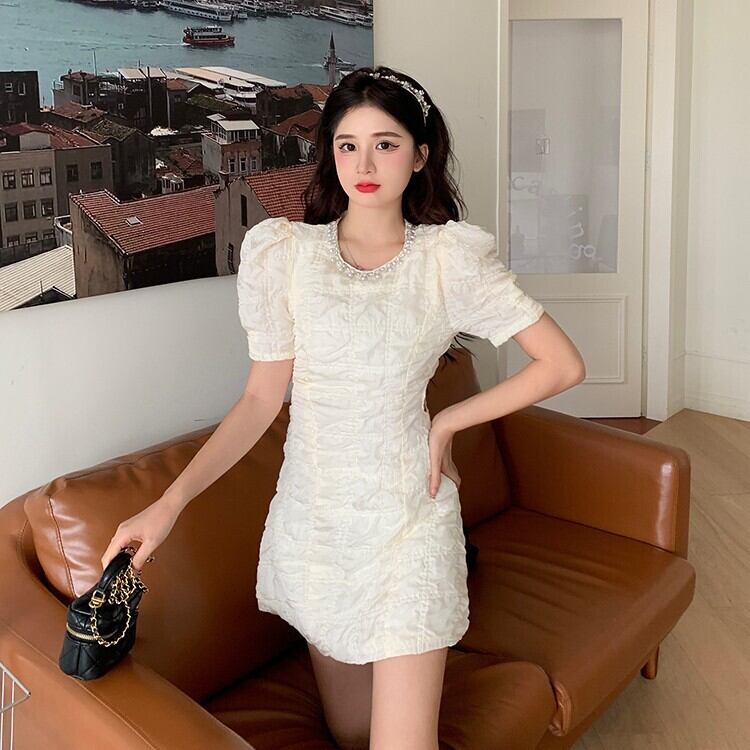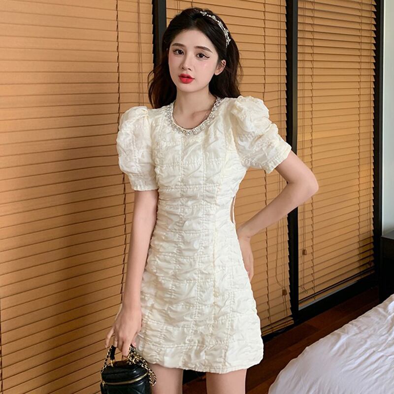 Puff sleeve dress female summer 2022 new French light luxury high-end small temperament sweet short skirt ショート 大人ガーリー スウィート キュート カジュアル サマー 夏物 スカート s576188972749667