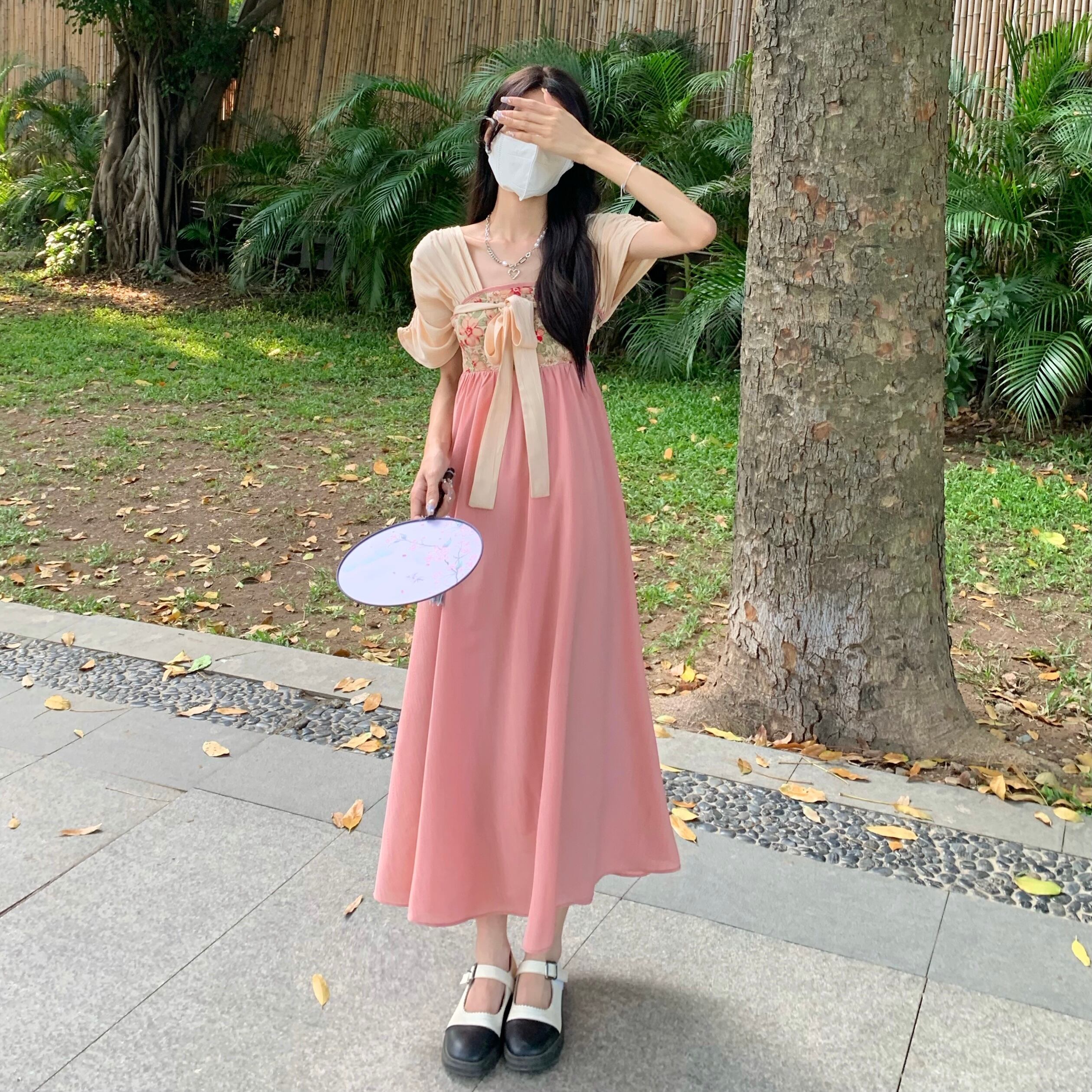 Improved Hanfu dress women's summer design sense niche 2022 new temperament gentle wind milk sweet long skirt ロング 大人ガーリー スウィート キュート カジュアル サマー 夏物 スカート s576196491841029