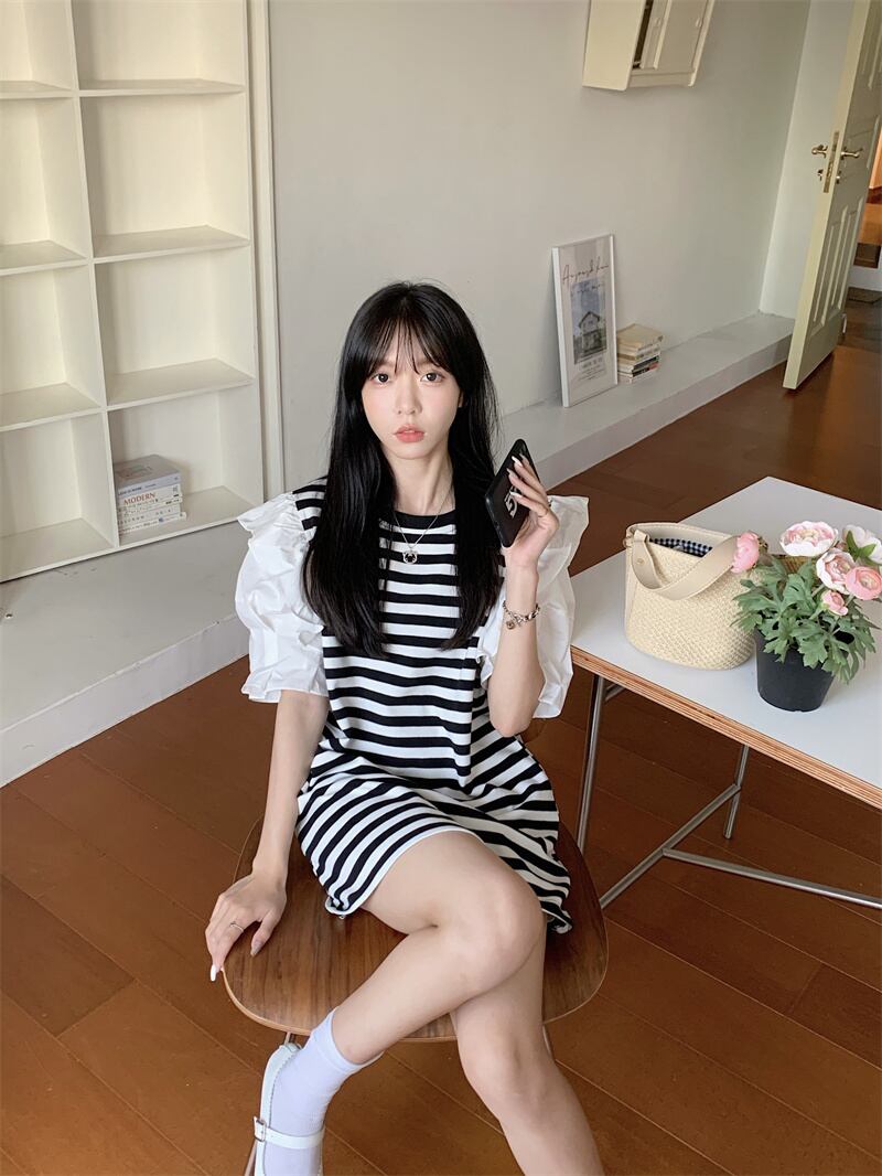 Striped dress women's summer design sense niche 2022 new style chic western style age-reducing milk good-looking skirt サマー 夏物 スカート ストライプ s576127570751047
