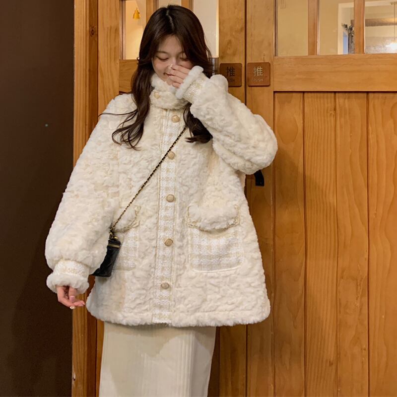 Plush jacket women's autumn and winter thickening 2022 new style chic chic high-end design sense small cotton clothes コットン オータム 秋物 ウィンター 冬物 s576124516761861