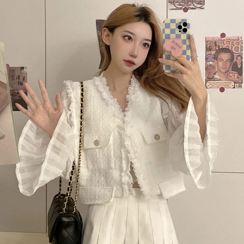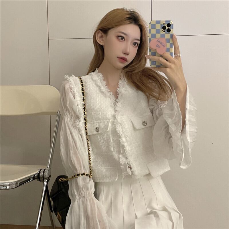 Xiaoxiangfeng white vest women's spring and autumn net red fashion outer vest vest layered short waistcoat outer wear two-piece suit ショート ホワイト レッド スプリング 春物 オータム 秋物 s576185278884593