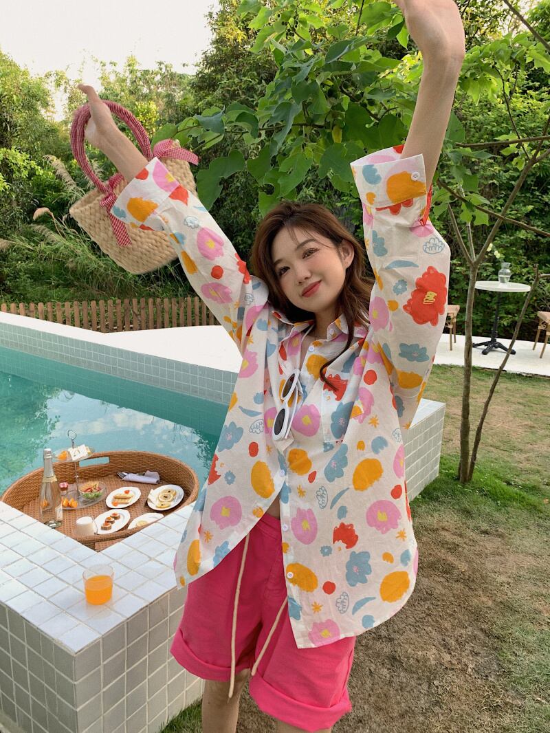 Flower shirt jacket women's summer sun protection clothing 2022 new design sense niche high-end unique mid-length top clothes サマー 夏物 フラワーデザイン s576119047070345