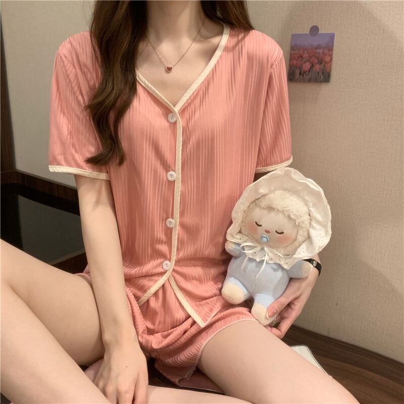 Pink short-sleeved pajamas women's summer ins wind 2022 new net red popular small casual home wear suit ピンク レッド カジュアル サマー 夏物 s57611598550181