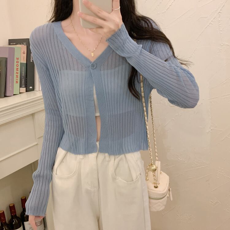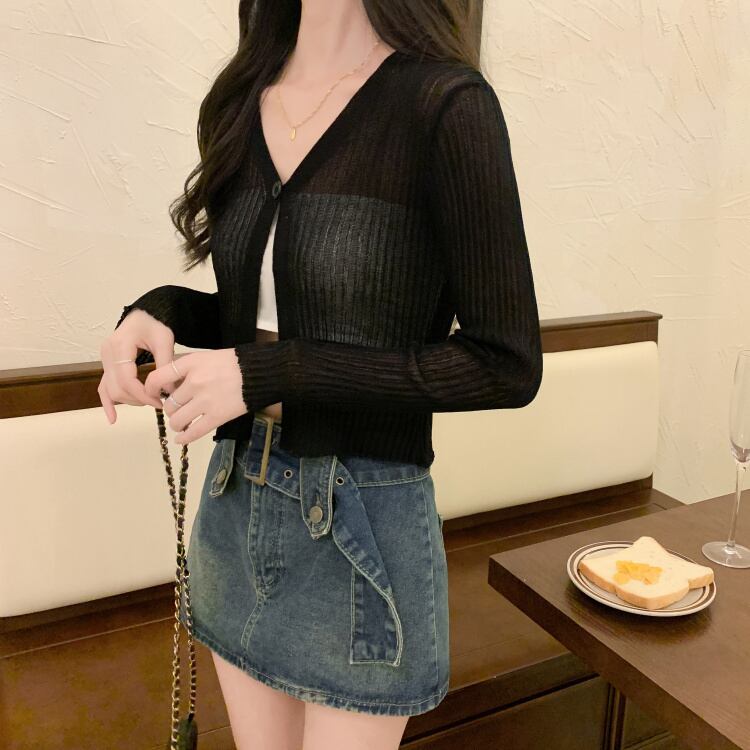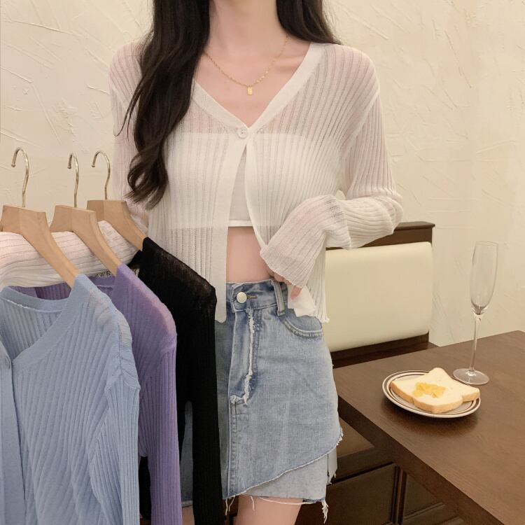 Knitwear women's thin summer white V-neck air-conditioning shirt design niche cardigan shawl sunscreen coat top ホワイト カーディガン サマー 夏物 Vネック s576144326145813
