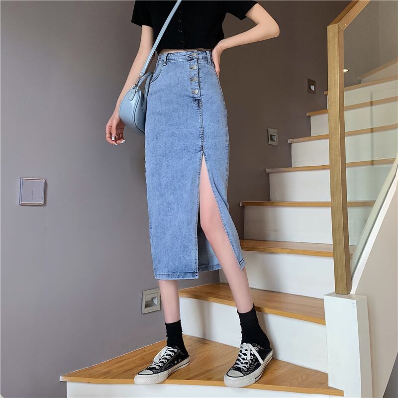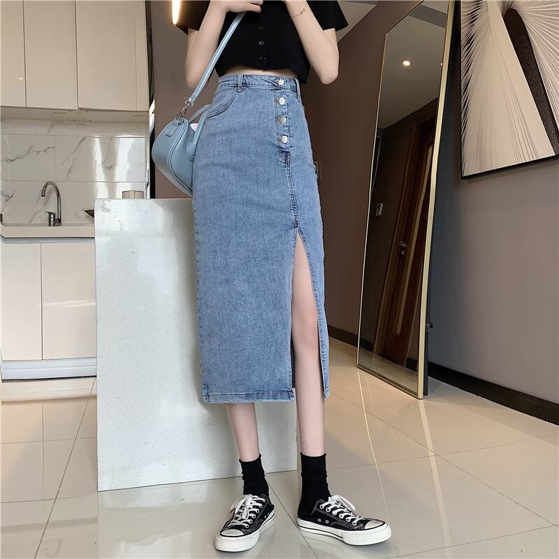 Mid-length denim skirt women's summer high-waisted a-line skirt 2022 new small man slit bag hip long skirt ロング サマー 夏物 スカート Aライン s576165631253730