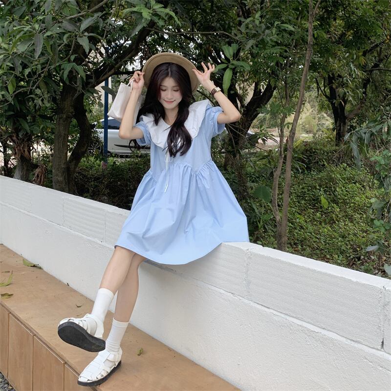 Blue puff sleeve dress female summer 2022 new gentle first love milk sweet little doll collar skirt ブルー 大人ガーリー スウィート キュート カジュアル サマー 夏物 スカート s57617933000284