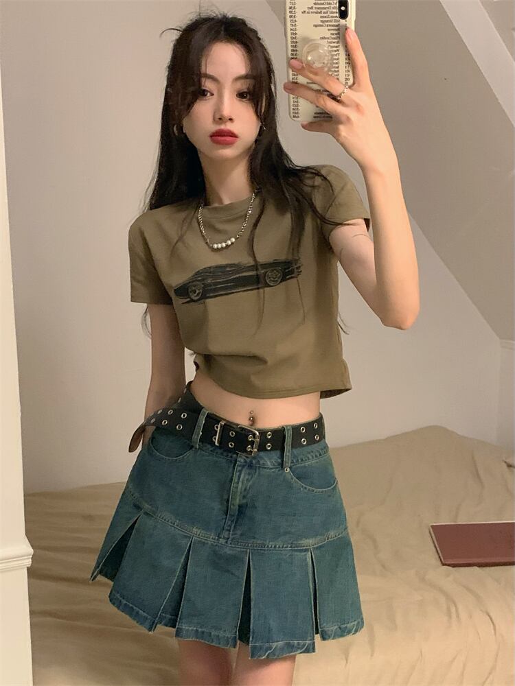 American retro short-sleeved T-shirt women's summer design niche 2022 new sweet slim short top clothes ショート レトロ 大人ガーリー スウィート キュート カジュアル サマー 夏物 スリム Tシャツ s576189638923159