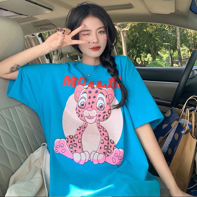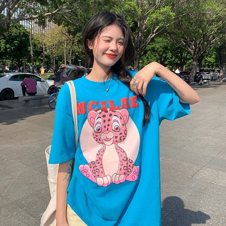 Blue tiger short-sleeved T-shirt women's design sense niche summer 2022 new chic Hong Kong-flavored cotton top ins tide レッド ブルー コットン サマー 夏物 Tシャツ s576186847814870