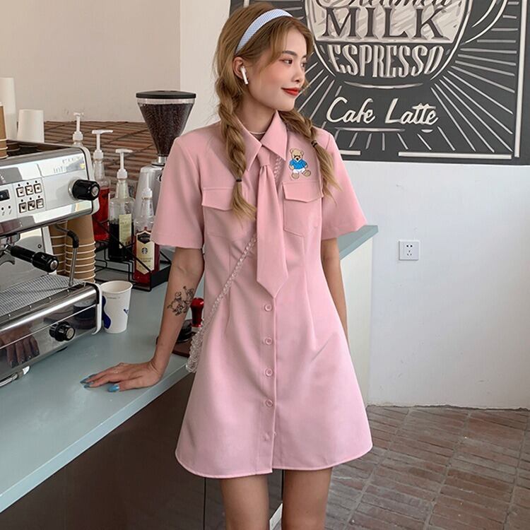 Pink polo collar dress female summer 2022 new style small ese college style age-reducing short skirt ショート ピンク サマー 夏物 スカート s576177102074769