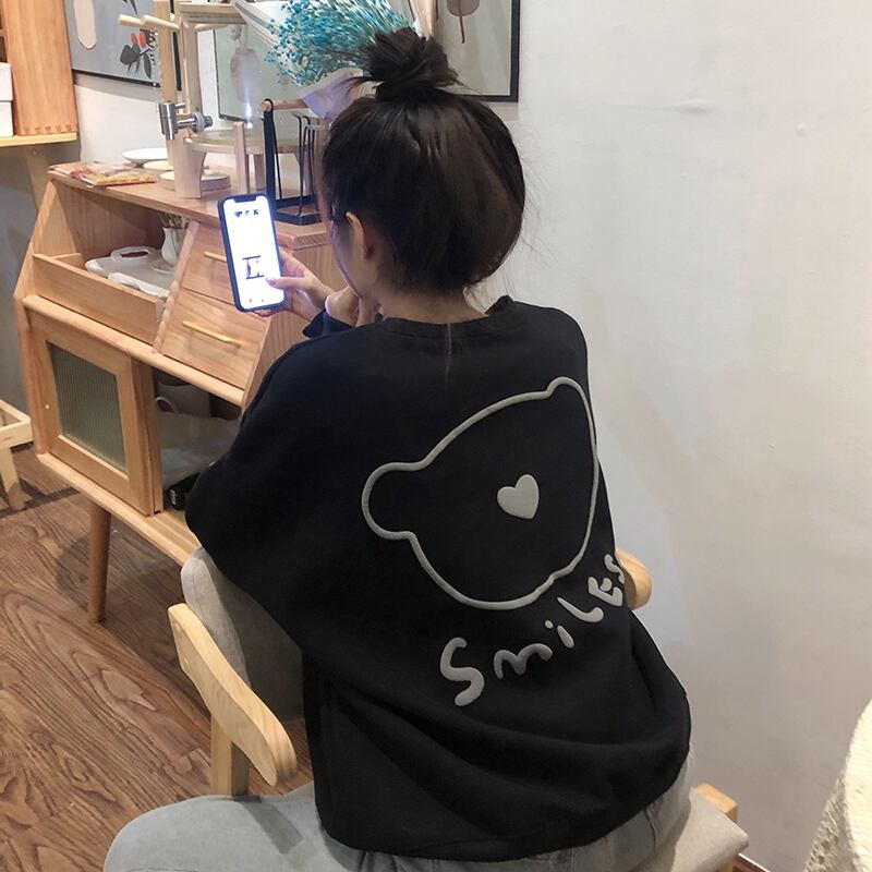 Black plus velvet thickened bear sweater women's autumn and winter 2022 new loose version design sense on the clothes trend ブラック オータム 秋物 ウィンター 冬物 s576133835588078