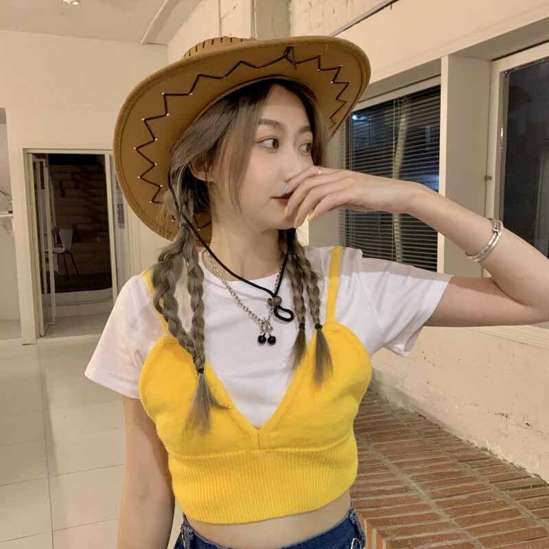 Western-style gentle suit female summer version with short T-shirt net red suspender knitted sweater fashion two-piece tide ショート レッド サマー 夏物 Tシャツ s576137118311455