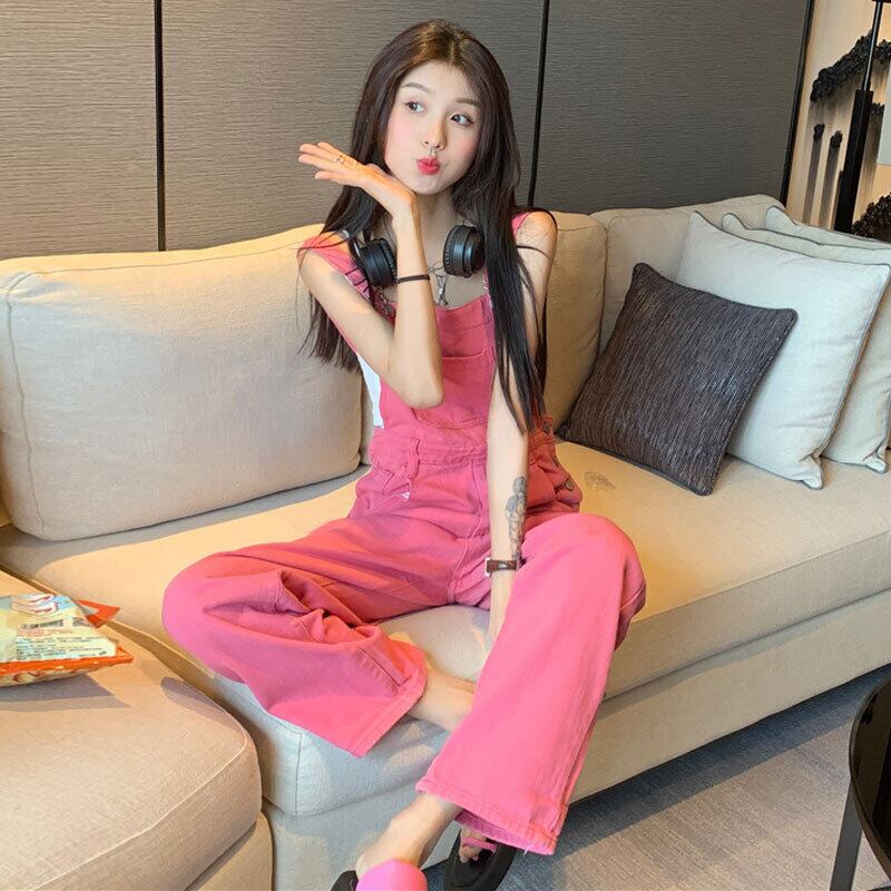 Pink denim overalls women's summer design niche 2022 new fashion small salty sweet jumpsuit ピンク 大人ガーリー スウィート キュート カジュアル サマー 夏物 s576181065498474
