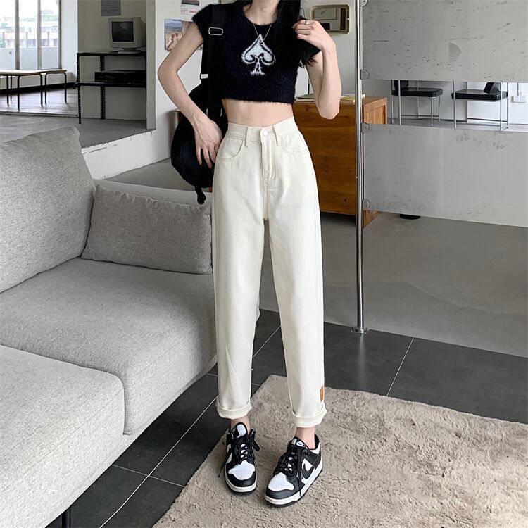 Nine-point jeans women's summer high waist loose straight pipe pants 2022 new small senior harem pants ハイウェスト サマー 夏物 s576197325769431
