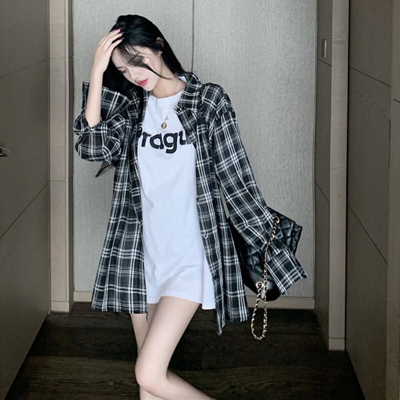 Plaid shirt jacket women's spring design sense sunscreen shirt 2022 new chic Hong Kong flavor mid-length top スプリング 春物 s5761590241948