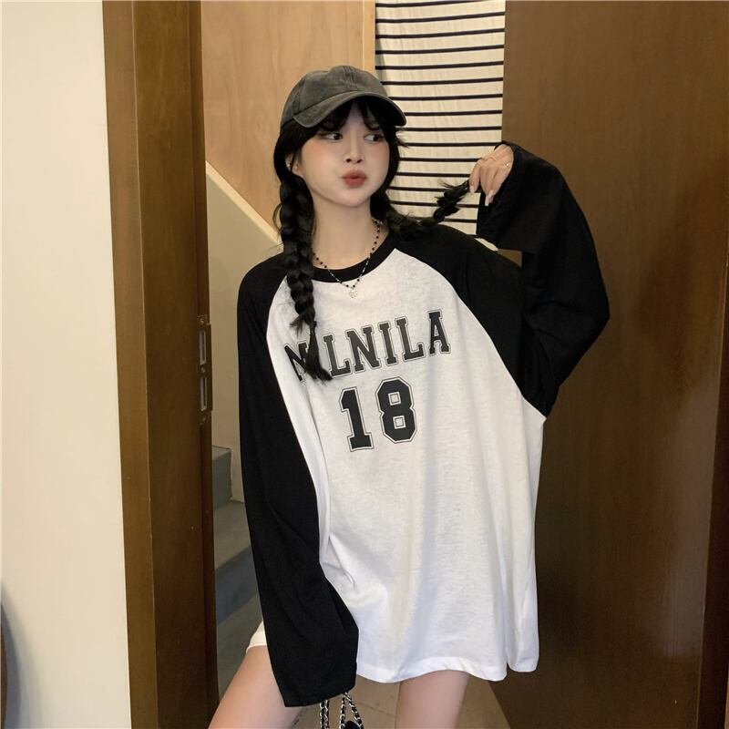 Raglan long-sleeved T-shirt women's summer design niche 2022 new oversize bottoms missing loose tops ロング サマー 夏物 Tシャツ s576195084340578