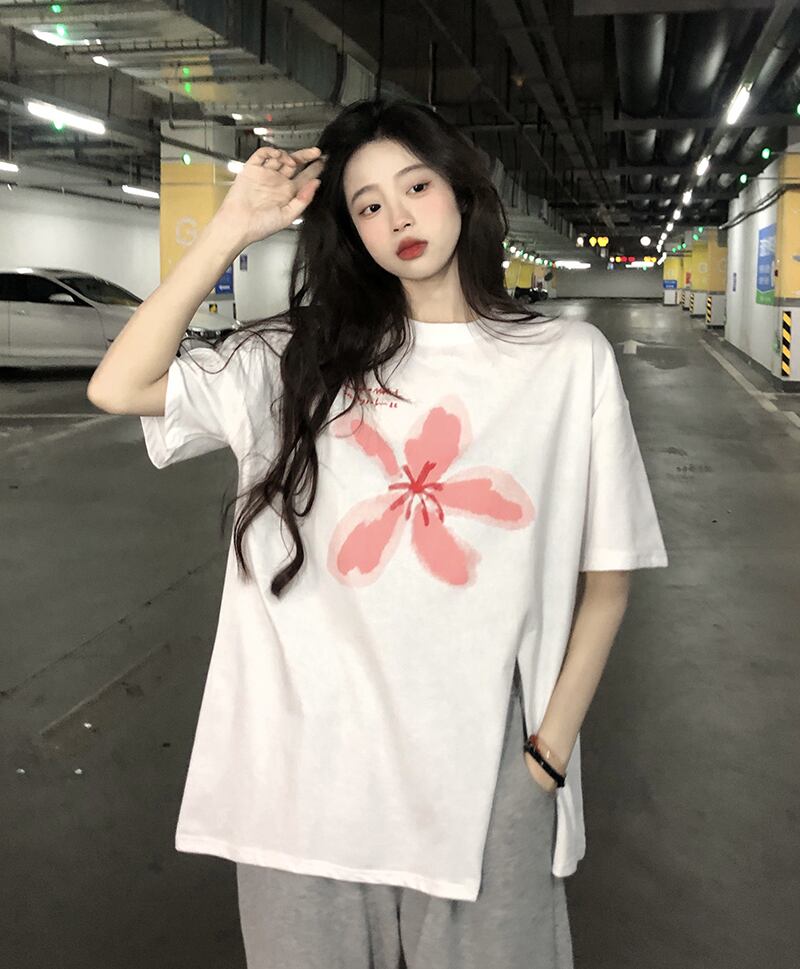 色:ホワイトsplitピンクflowerT,ブラックsplitピンクflowerT