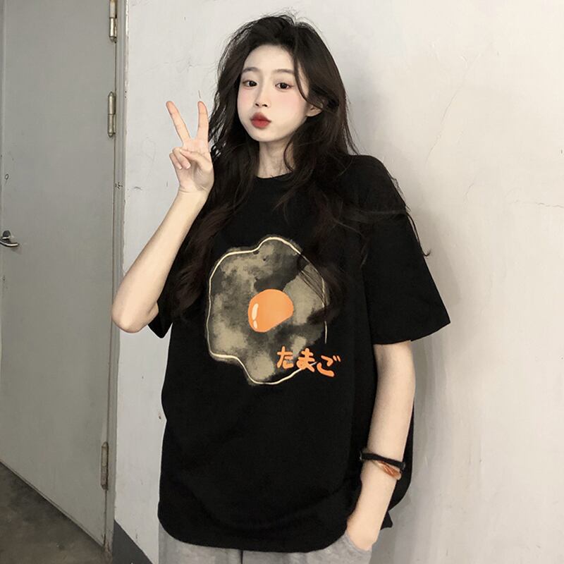 Black short-sleeved T-shirt women's summer ins super 2022 new design sense niche oversize all-match clothes ブラック サマー 夏物 Tシャツ s5761854725955
