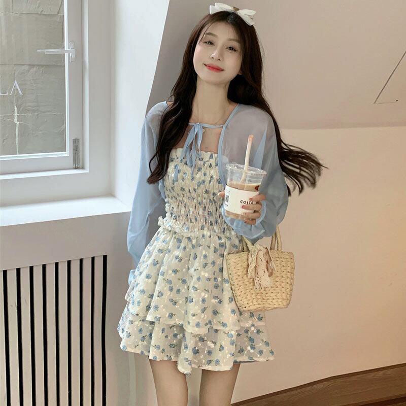 色:ブルーcardigan,Tubeトップドレス