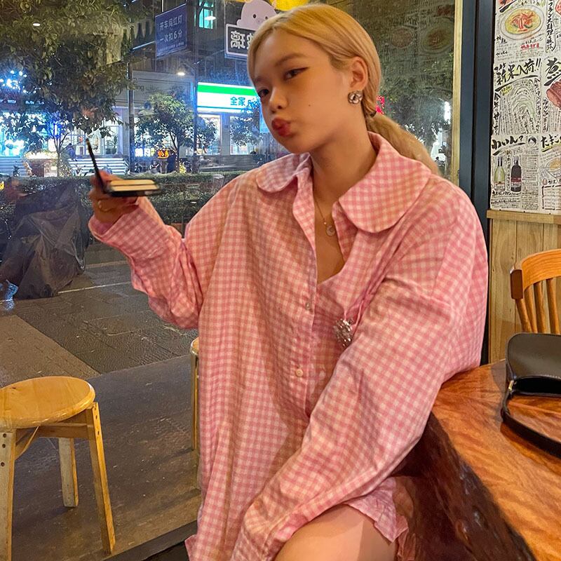 Pink Plaid Shirt Dress Women's Spring 2022 Small Small Temperament Short Skirt ショート ピンク スプリング 春物 スカート s576170421717932