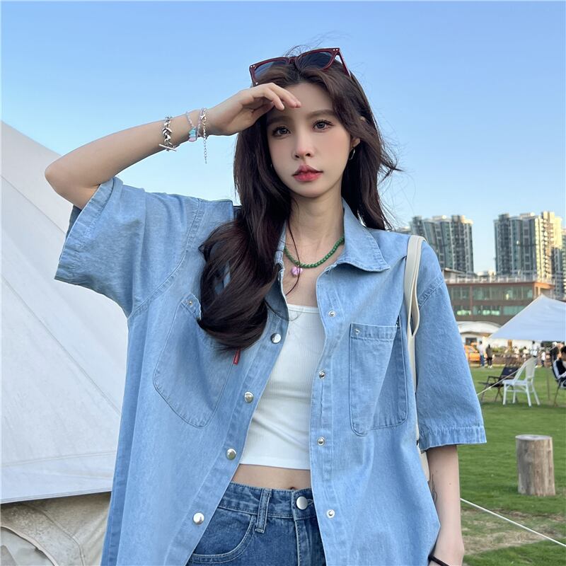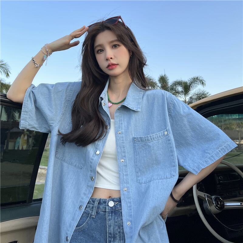 Denim shirt jacket women's summer 2022 new Hong Kong flavor retro chic loose casual lazy wind senior top レトロ カジュアル サマー 夏物 s576131791315389