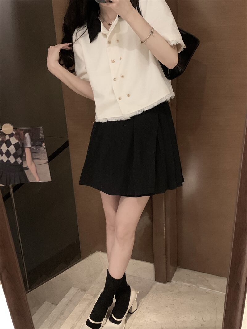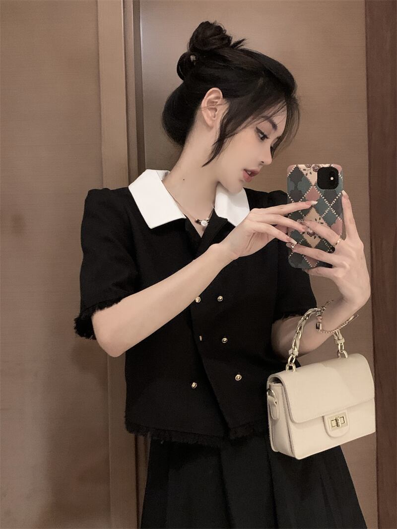 French retro Xiaoxiang short top clothes women's summer high-end unique unique shirts small short-sleeved shirts ショート レトロ シャツ サマー 夏物 s576173436549451