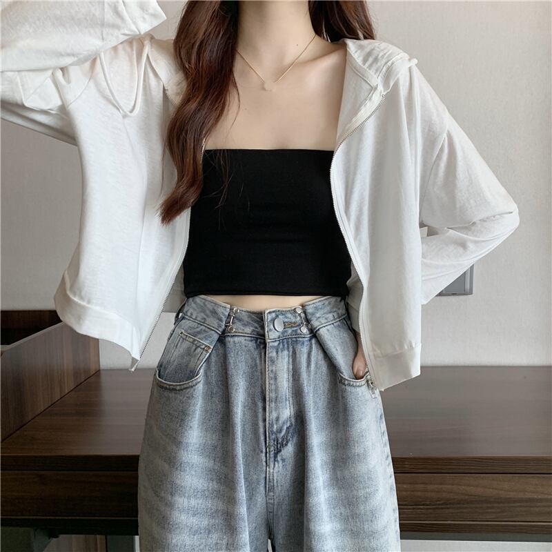 White long-sleeved hooded jacket women's summer sun protection clothing 2022 new small net red popular short top ショート ロング ホワイト レッド サマー 夏物 s576134147098546