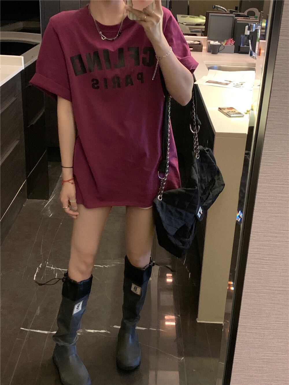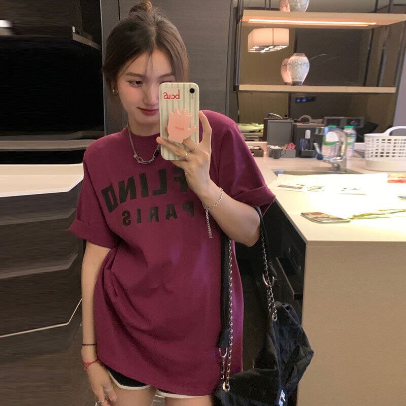 Letter short-sleeved T-shirt women's summer 2022 new retro Hong Kong flavor design niche loose casual top ins tide レトロ カジュアル サマー 夏物 Tシャツ s576110053566646
