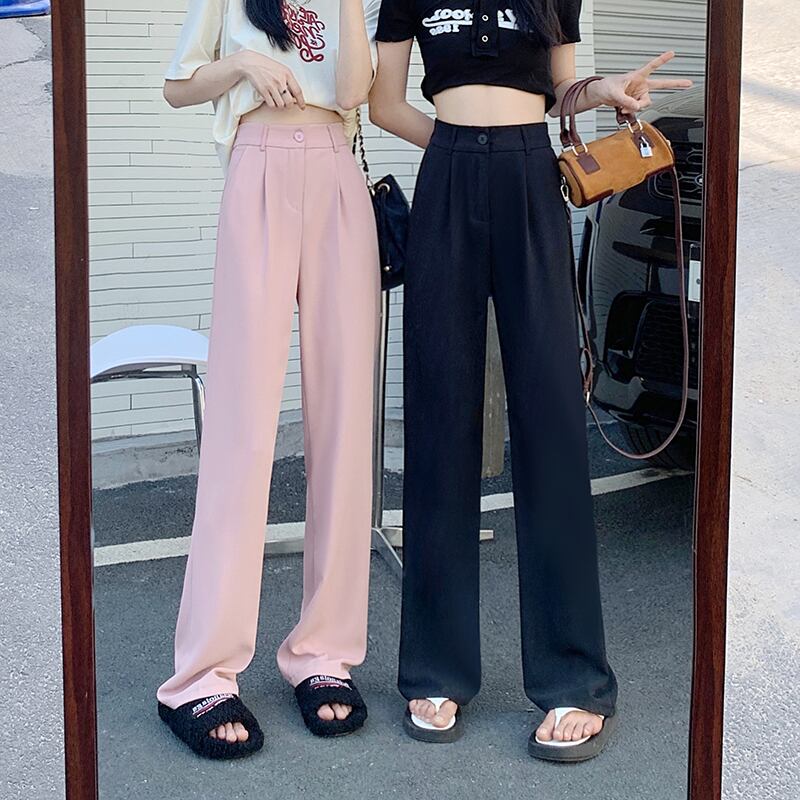 Pink suit pants women's summer 2022 new high-waisted drooping mopping pants loose straight wide-leg pants trendy ins ピンク サマー 夏物 s57616182402397