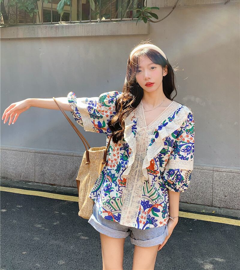 Gentle V-neck top women's clothing design niche short-sleeved T-shirt summer French beautiful and unique small shirt サマー 夏物 Vネック Tシャツ s576197006881854