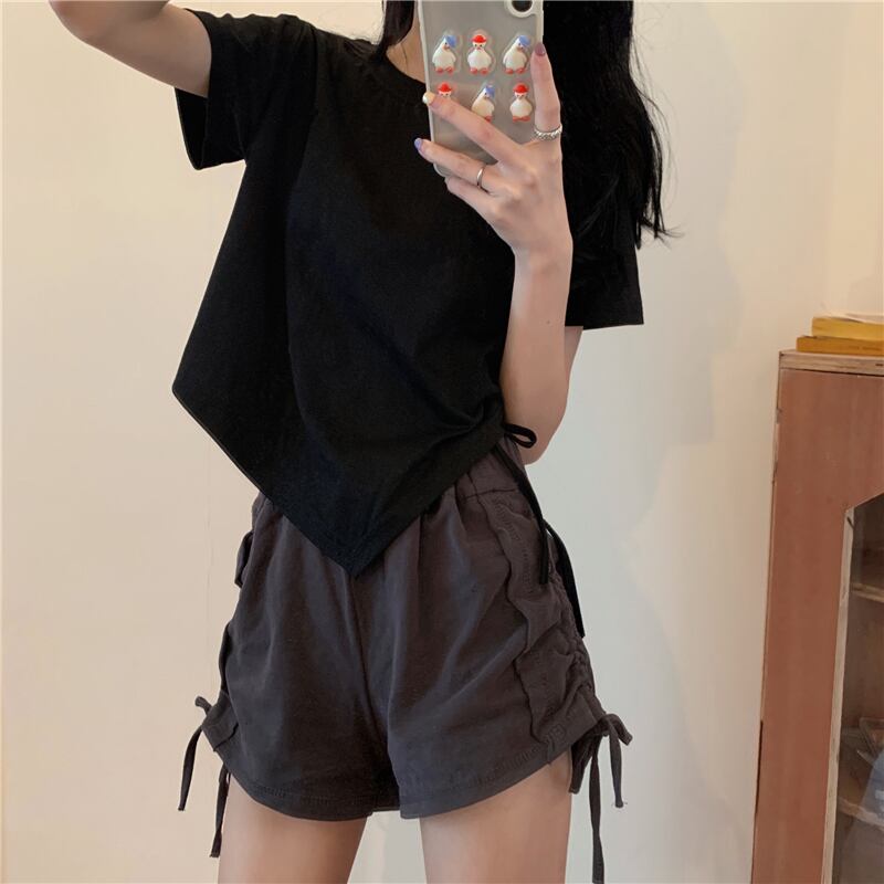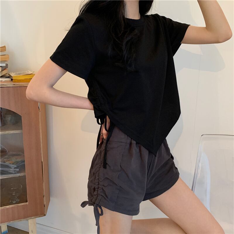 Pure lust sweet irregular short top clothes women's summer 2022 new design sense niche short-sleeved T-shirt ショート 大人ガーリー スウィート キュート カジュアル サマー 夏物 Tシャツ s57613918708667
