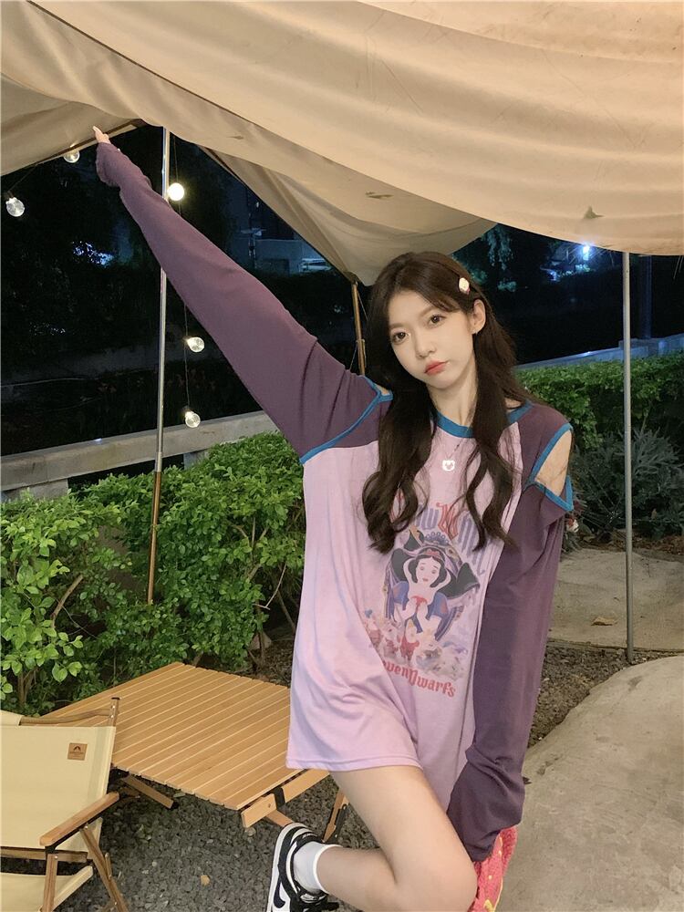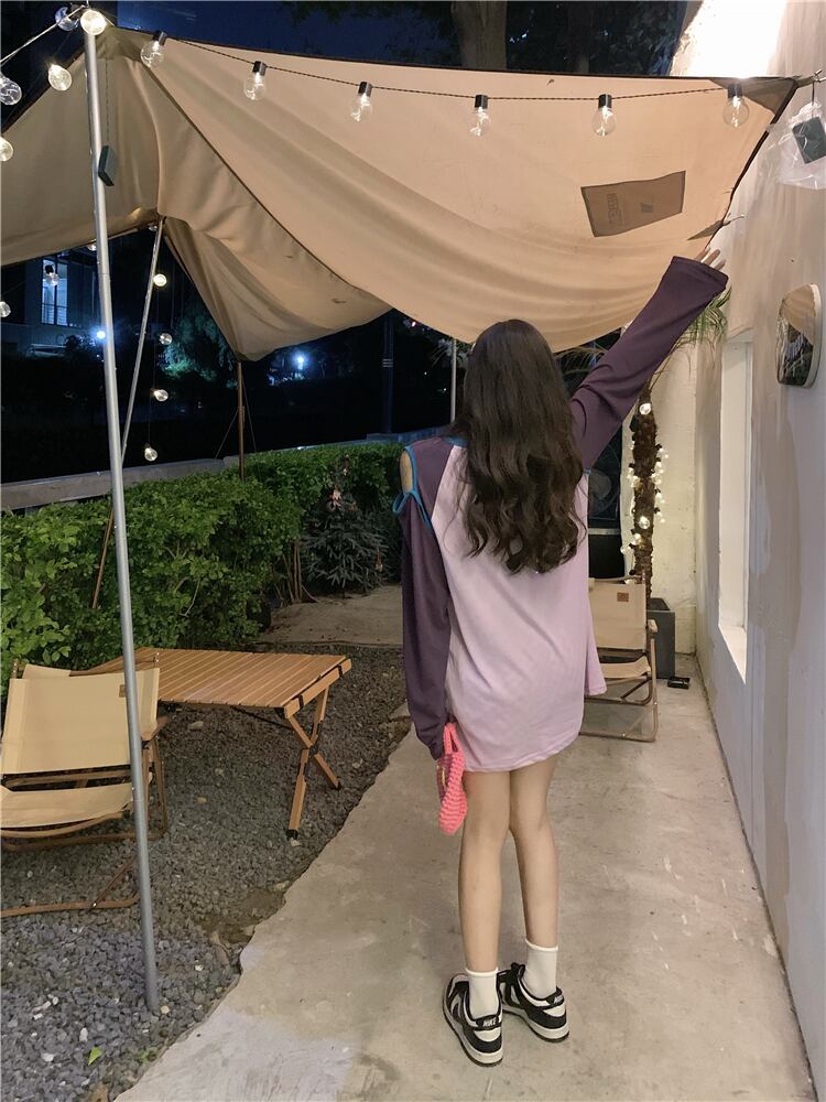 Sunscreen long-sleeved T-shirt women's design sense niche summer thin section 2022 new loose shoulder strap top ins tide ロング サマー 夏物 Tシャツ s576178647022355