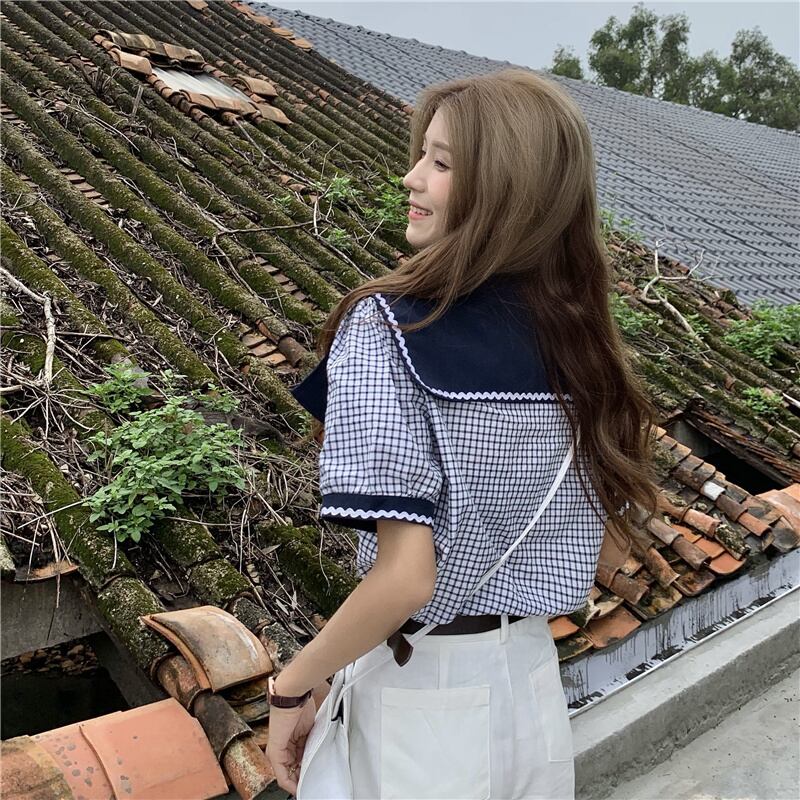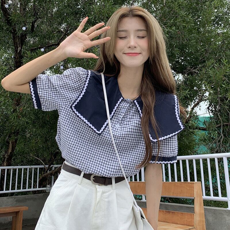 style Western-style age-reducing tops women's summer design beautiful shirts 2022 new short-sleeved plaid shirts シャツ サマー 夏物 s576127007078769