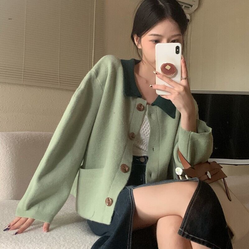 Green sweater coat women's design sense niche spring 2022 new style gentle high-end chic knitted cardigan カーディガン スプリング 春物 グリーン s576140190813352