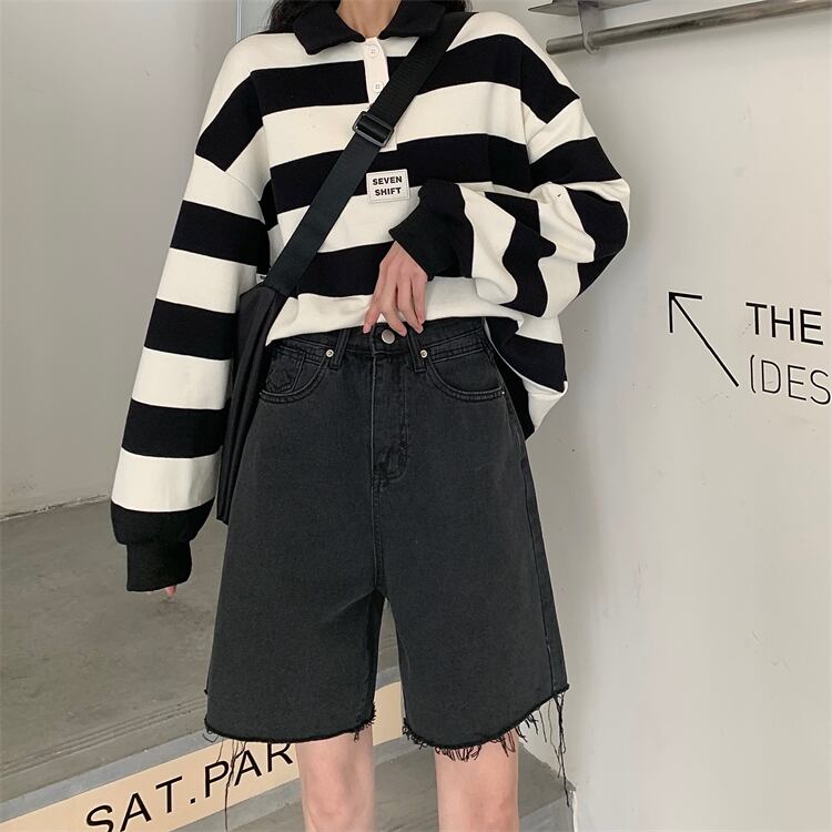 Denim shorts women's summer small five-point pants 2022 new chic Hong Kong flavor high waist straight wide leg pants tide ハイウェスト サマー 夏物 ショーツ ブルマー ワイドレッグ ワイドパンツ s57611941749926
