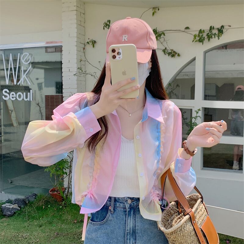 Rainbow sunscreen shirt women's design sense niche summer chic high-end unique small short top clothes ショート サマー 夏物 s576145658661830
