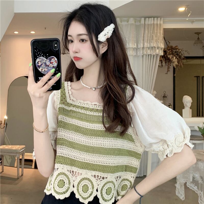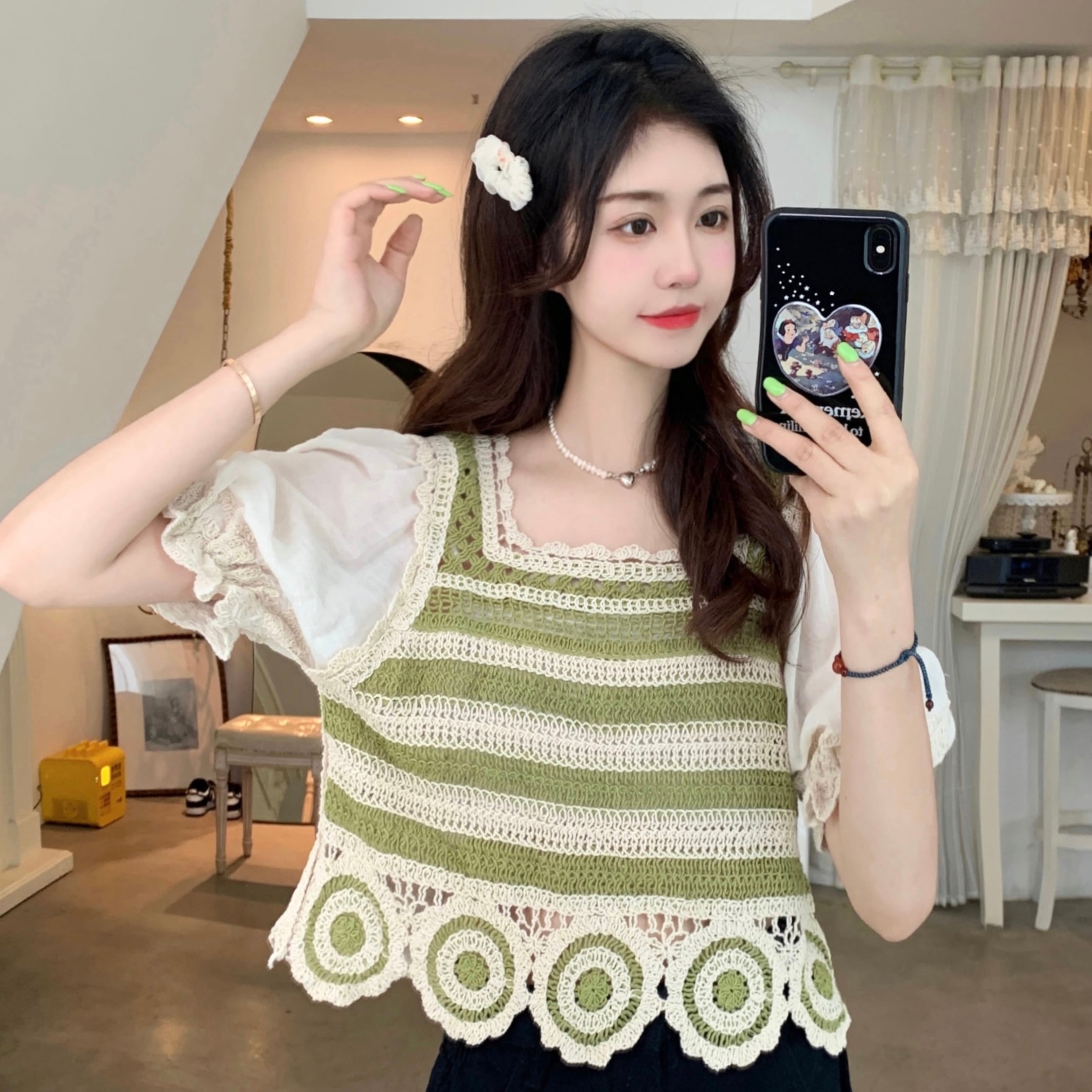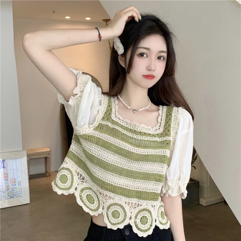 Fake two-piece short-sleeved T-shirt women's clothing design niche summer 2022 new sweet gentle short top ショート 大人ガーリー スウィート キュート カジュアル サマー 夏物 Tシャツ s576117875903083