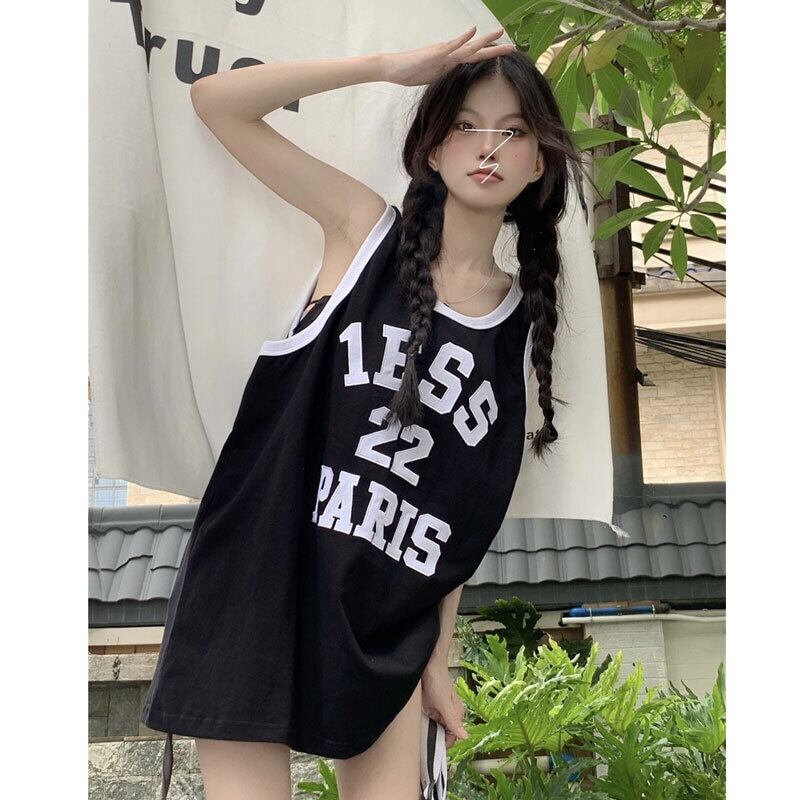 American sports style sleeveless T-shirt women's summer 2022 new design small loose casual vest top clothes カジュアル サマー 夏物 ノースリーブ Tシャツ s576191397026457