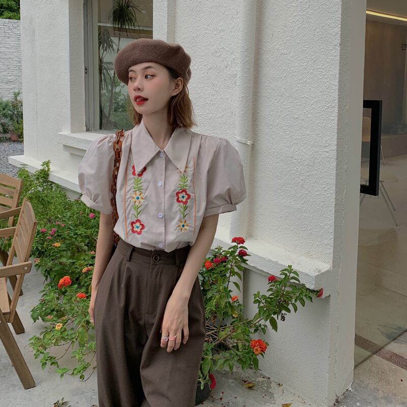 White puff sleeve shirt women's summer 2022 new style chic gentle sweet little chic top clothes ホワイト 大人ガーリー スウィート キュート カジュアル サマー 夏物 s576185416094749
