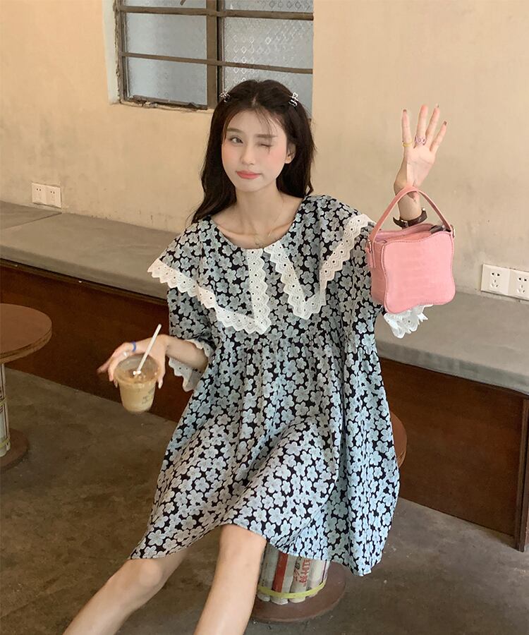 Doll collar floral dress female design sense niche summer 2022 new pure sweet small short skirt ショート 大人ガーリー スウィート キュート カジュアル サマー 夏物 花柄 スカート ピュア s576199509598530