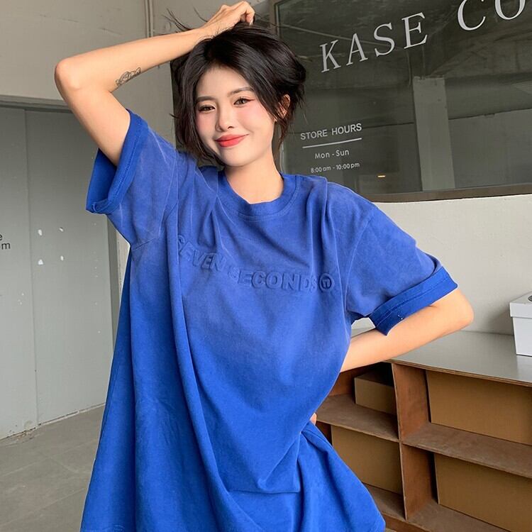 Gradient color short-sleeved T-shirt women's clothing design sense niche summer chic Hong Kong flavor loose American retro top ins tide レトロ サマー 夏物 Tシャツ s576133956758149