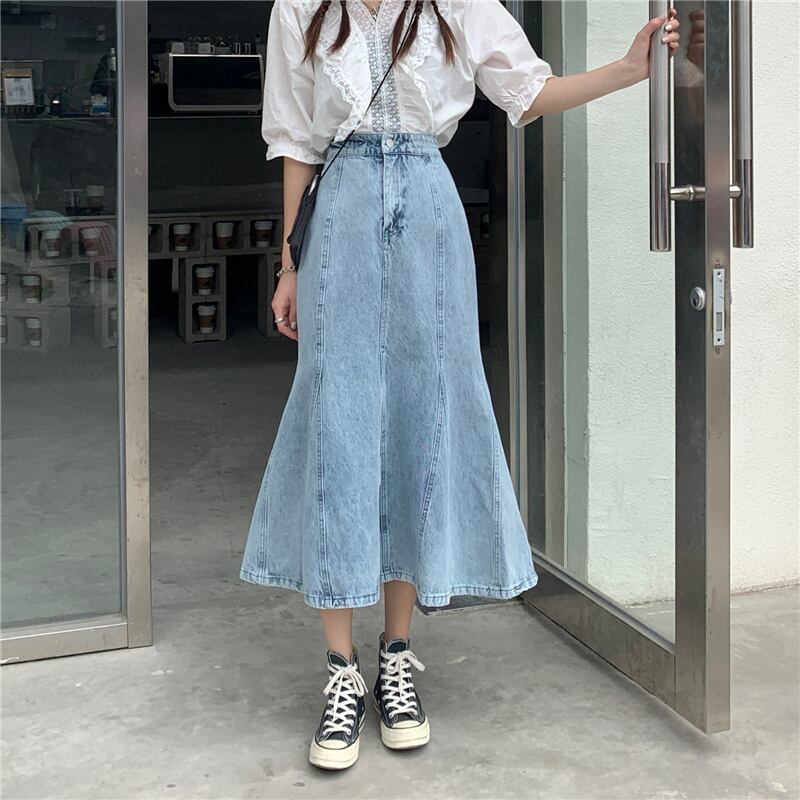 Denim skirt skirt women's design sense niche spring autumn small fishtail skirt high waist mid-length long skirt trendy ハイウェスト ロング スプリング 春物 オータム 秋物 スカート s576171451368991