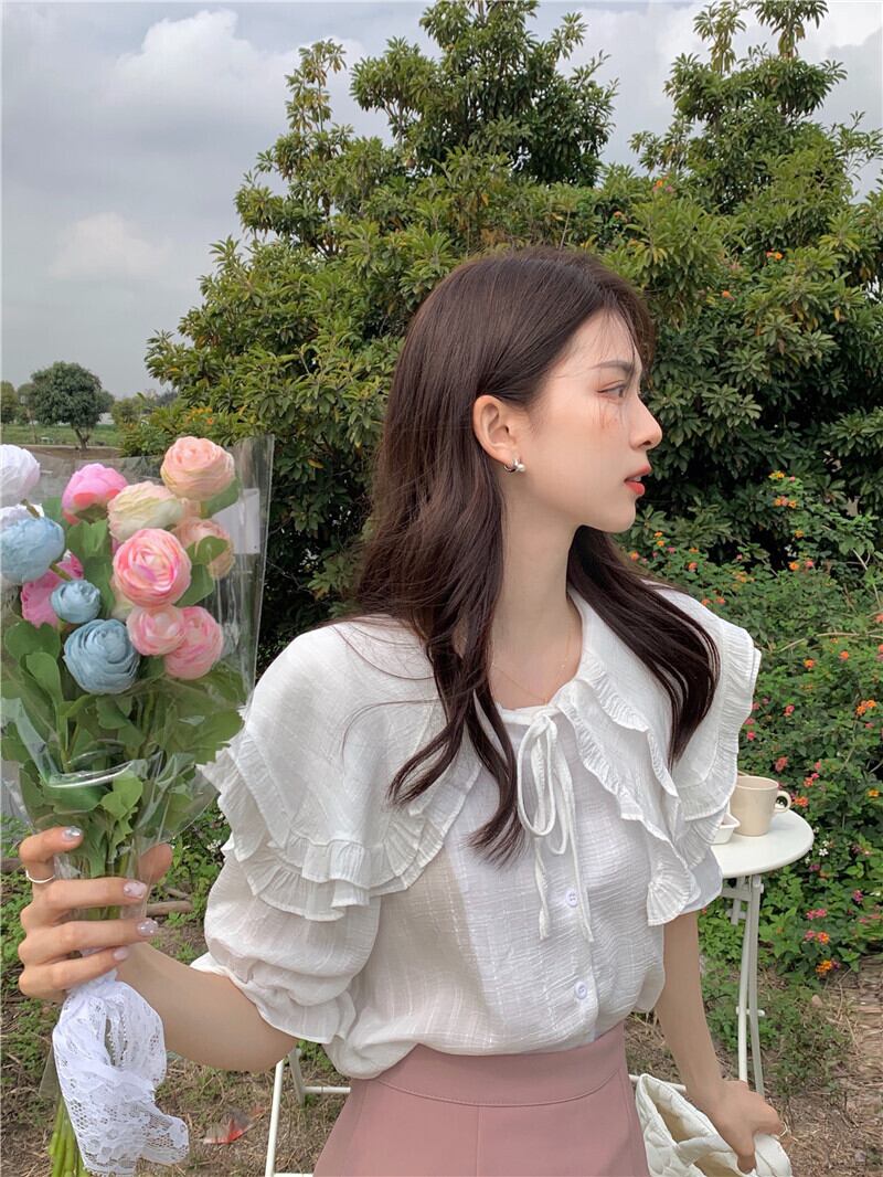 style Western-style age-reducing doll collar top clothes women's summer design sense niche temperament shirt white short-sleeved shirt ホワイト サマー 夏物 s576199162082630